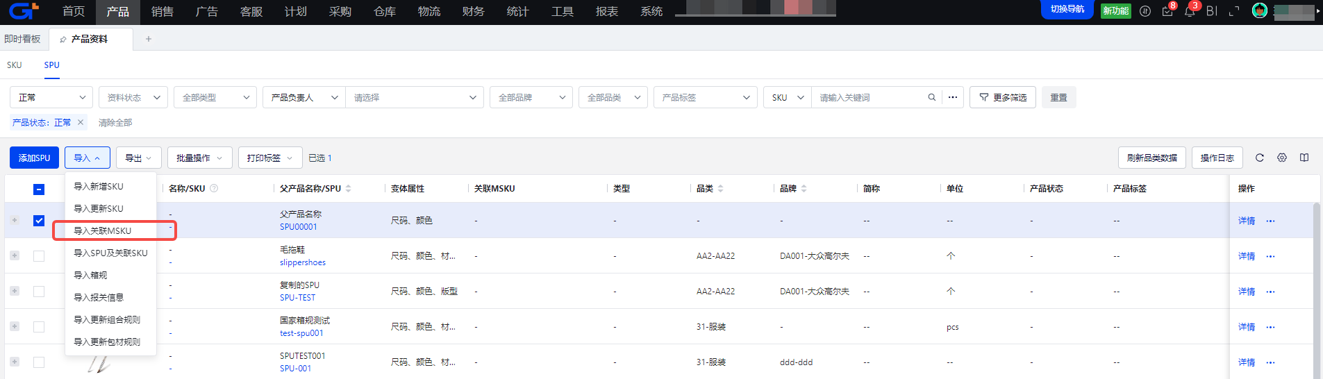 3.下载导入产品模板,将必填项维护进模板后导入系统即可