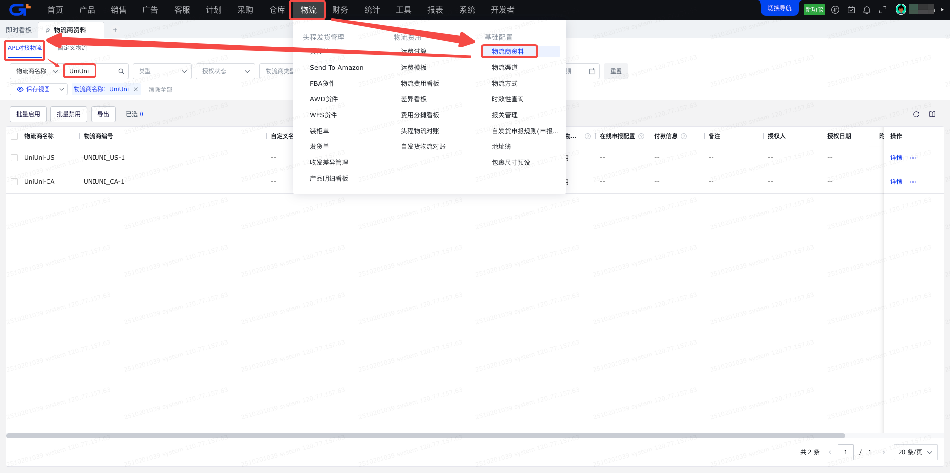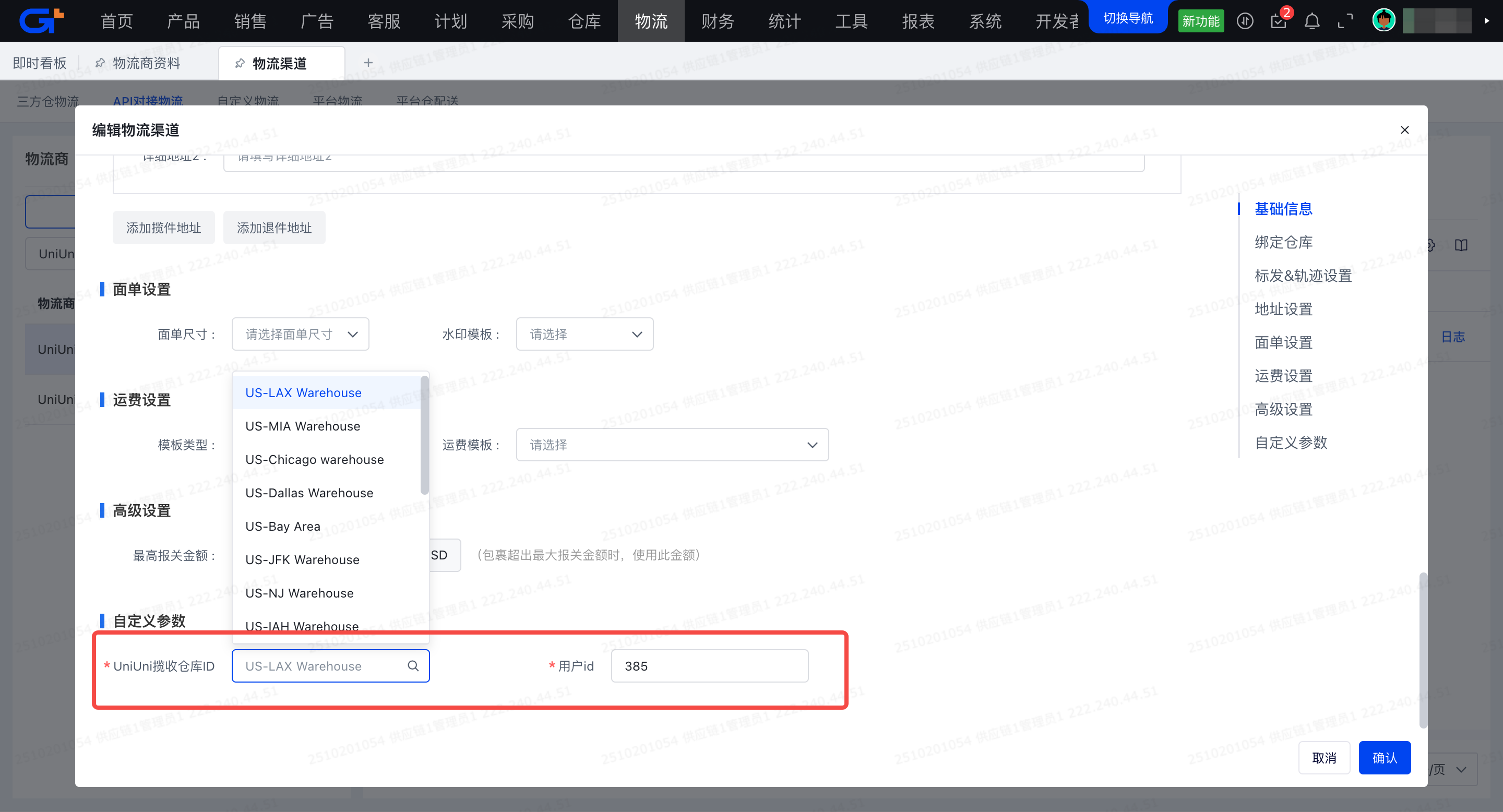 配置入口:物流-基础配置-物流渠道/API对接物流
