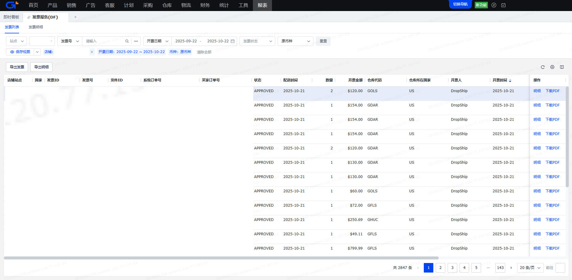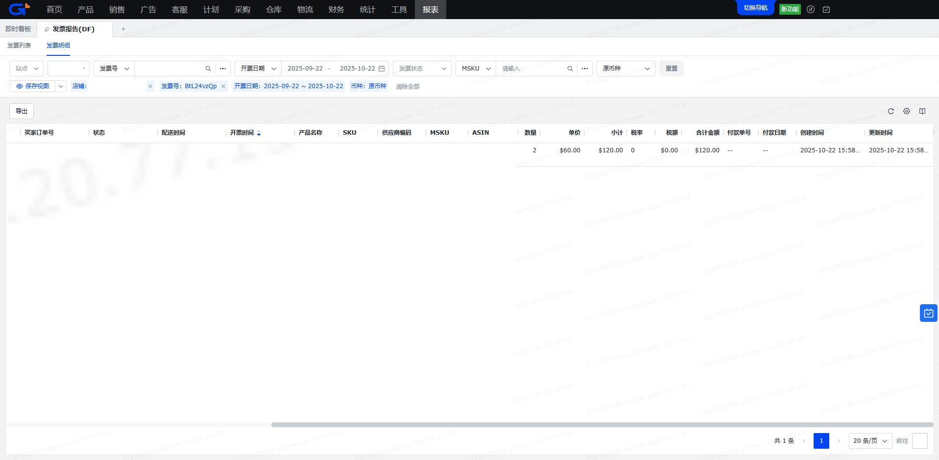 发票列表会展示出卖家开给亚马逊发票数据和对应的结算状态。