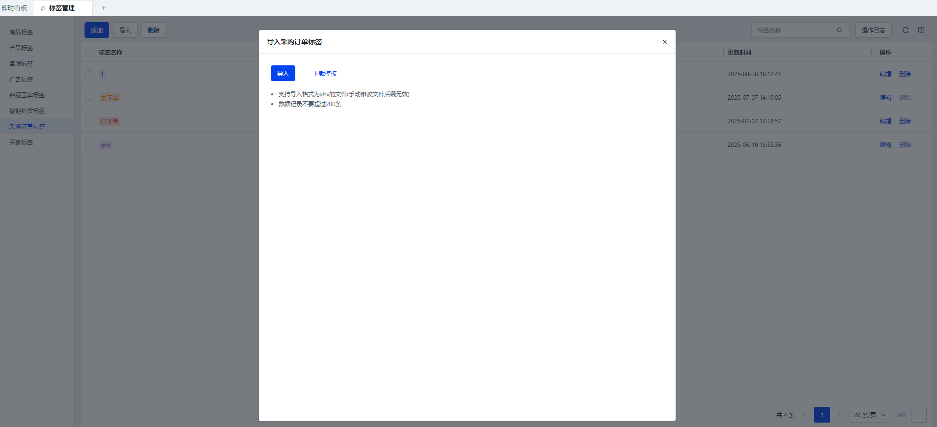 支持单个标签添加和批量导入标签,总计不超过 1000 个。