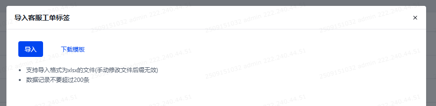 导入模板,一次导入不要超过200条数据,仅支持格式为xlsx的文件。