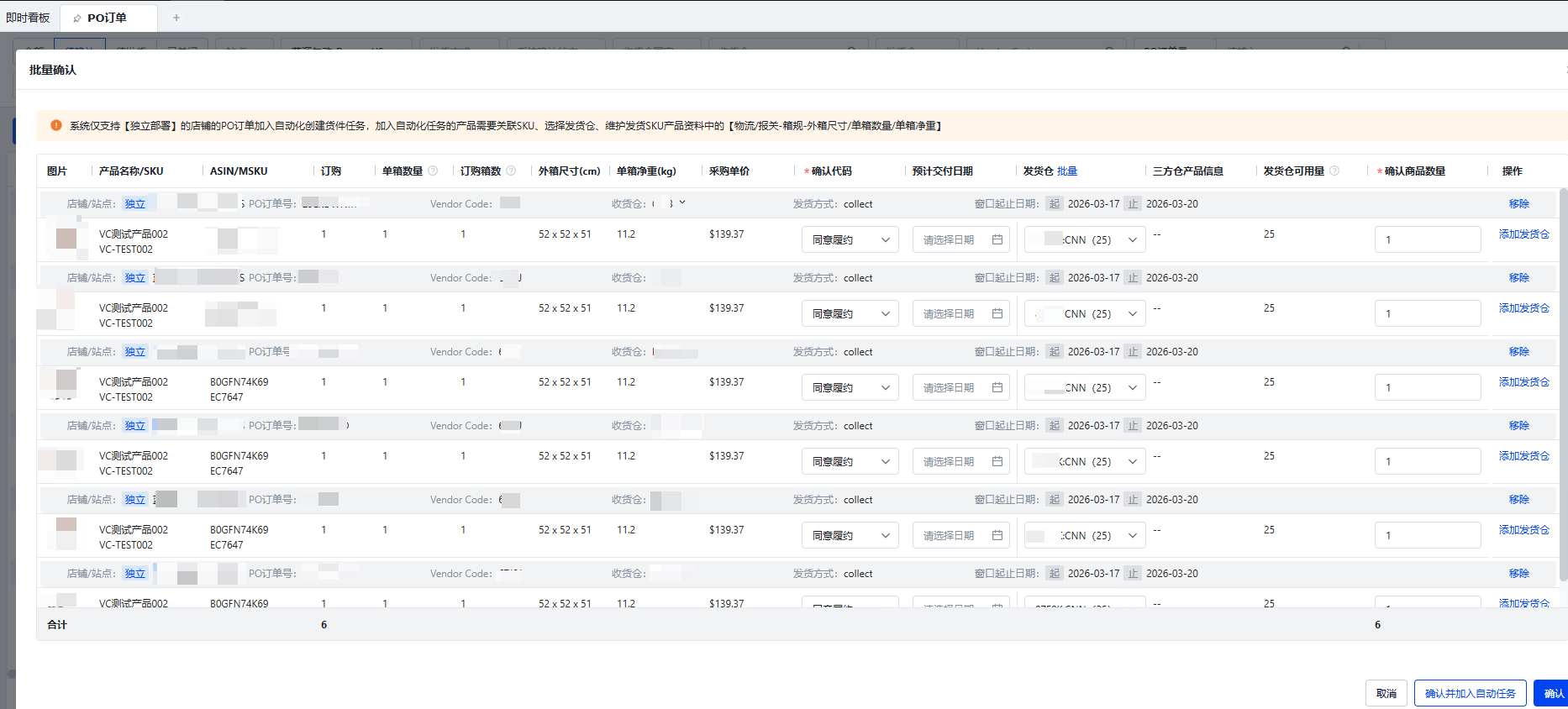 功能入口:销售-亚马逊-VC履约-PO订单-自动化履约任务