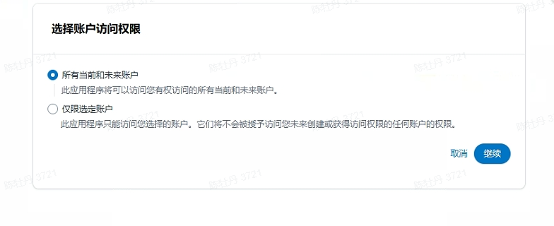 在亚马逊后台访问授权链接后,出现【选择账户访问权限】弹窗