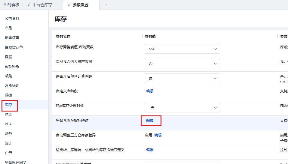 在库量:已有, 来源于业务参数设置的【库存-平台仓库存指标映射】