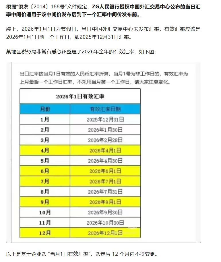A2:更新时间就是系统去中国银行获取汇率的时间,更新时间是每月的1号1点。