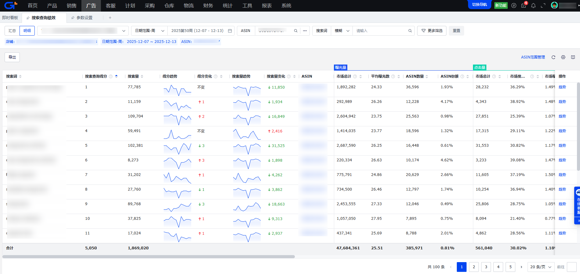 亚马逊搜索查询绩效的API接口,仅支持ASIN视图的数据,不支持品牌视图数据获取,所以系统暂不支持