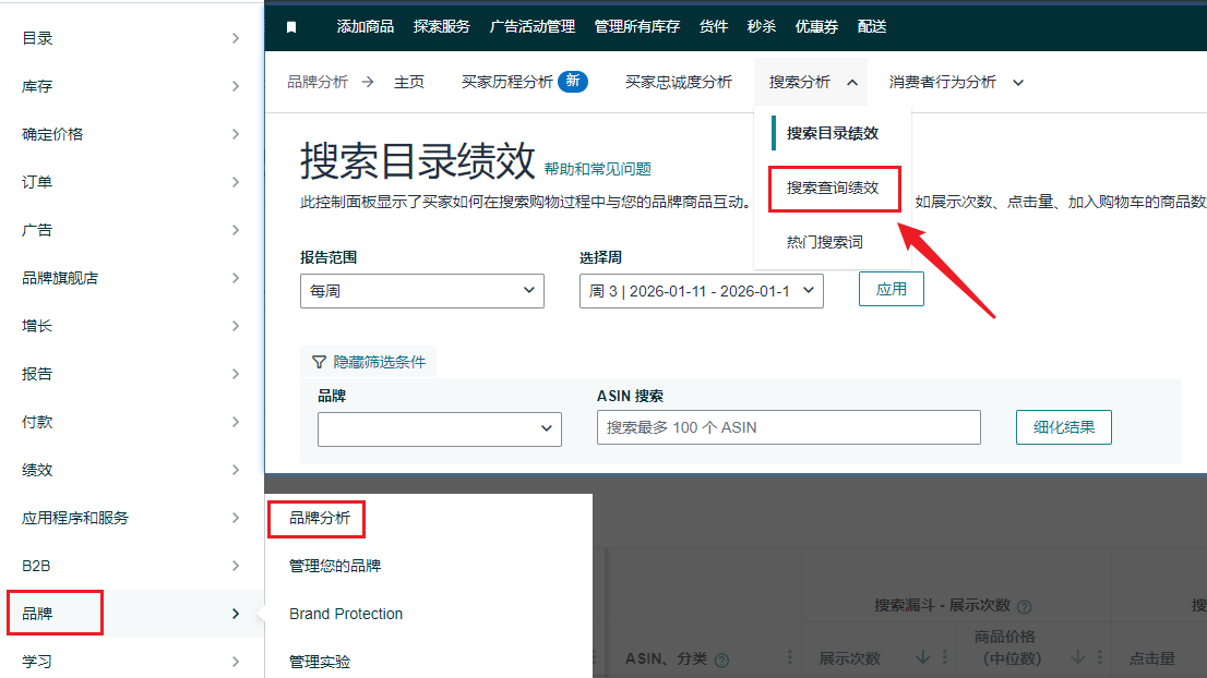 亚马逊后台数据源:卖家后台-品牌-品牌分析-搜索分析-搜索查询绩效(Search Query Performance)